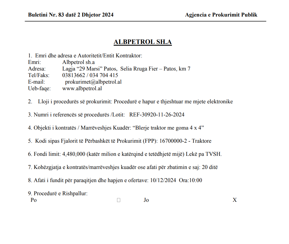 Procuring Authority / Buyer Sh.A Albpetrol
