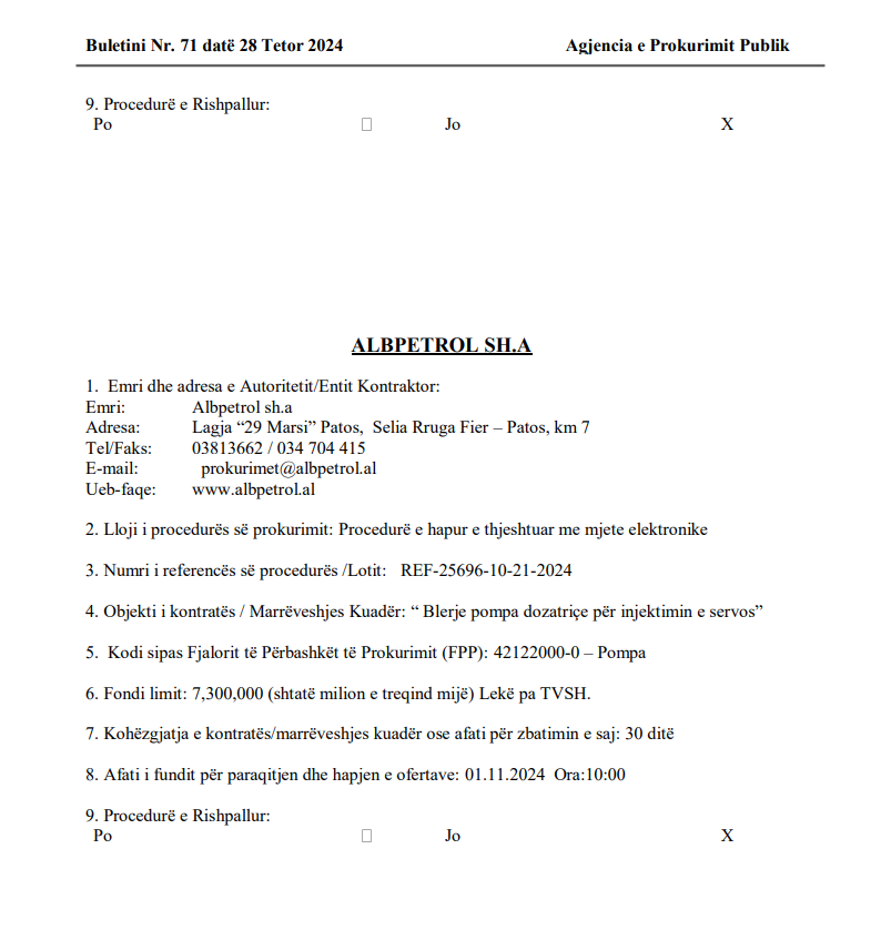 | Procuring Authority / Buyer | Sh.A Albpetrol | ||