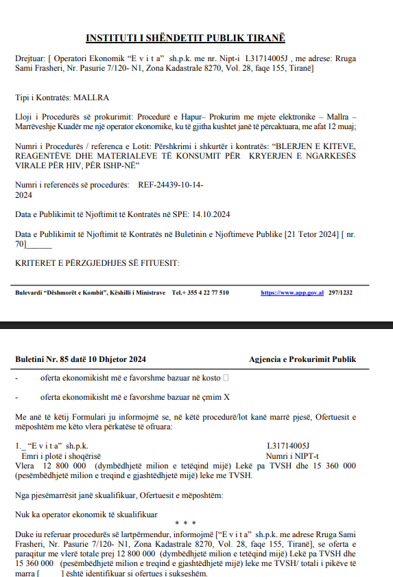 | Autoritet Prokurues | Instituti i Shëndetit Publik Tiranë | |||||||