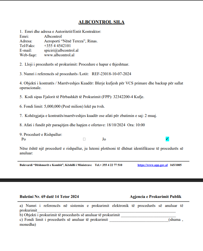 Objekti i Tenderit Blerje kufjesh për VCS primare dhe backup për sallat operacionale
